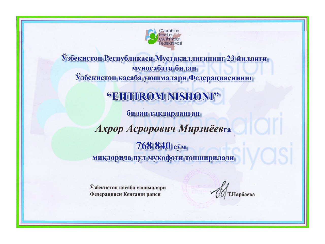 Mirzaev Mavlon Boboqulovich